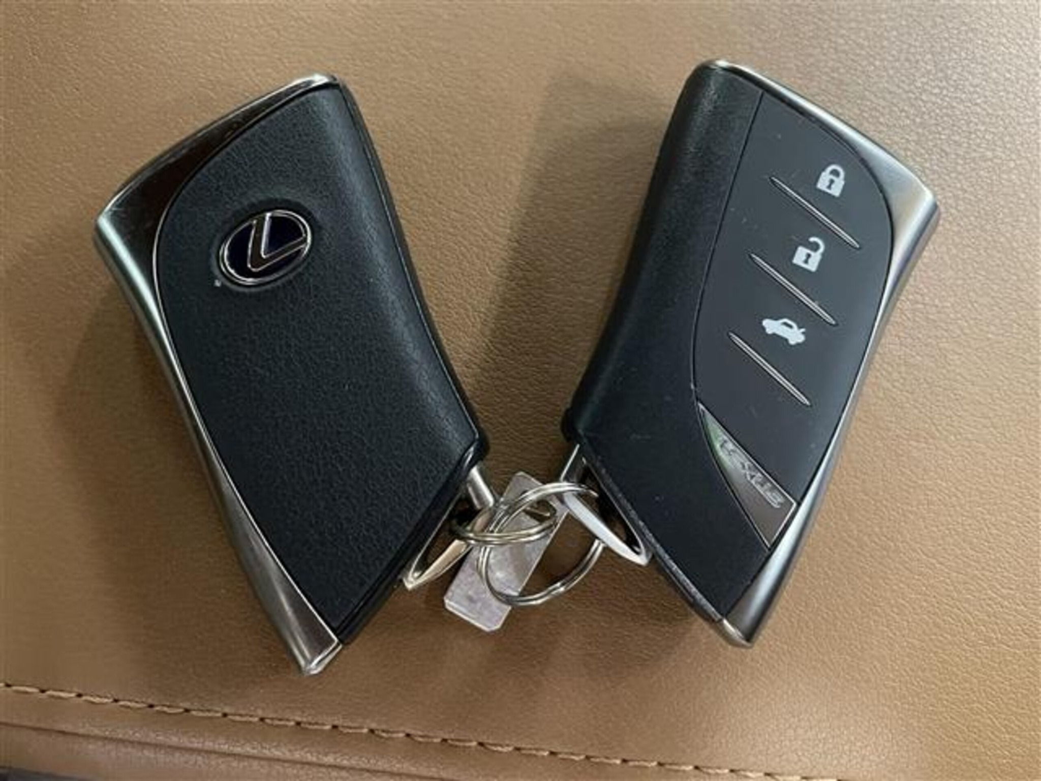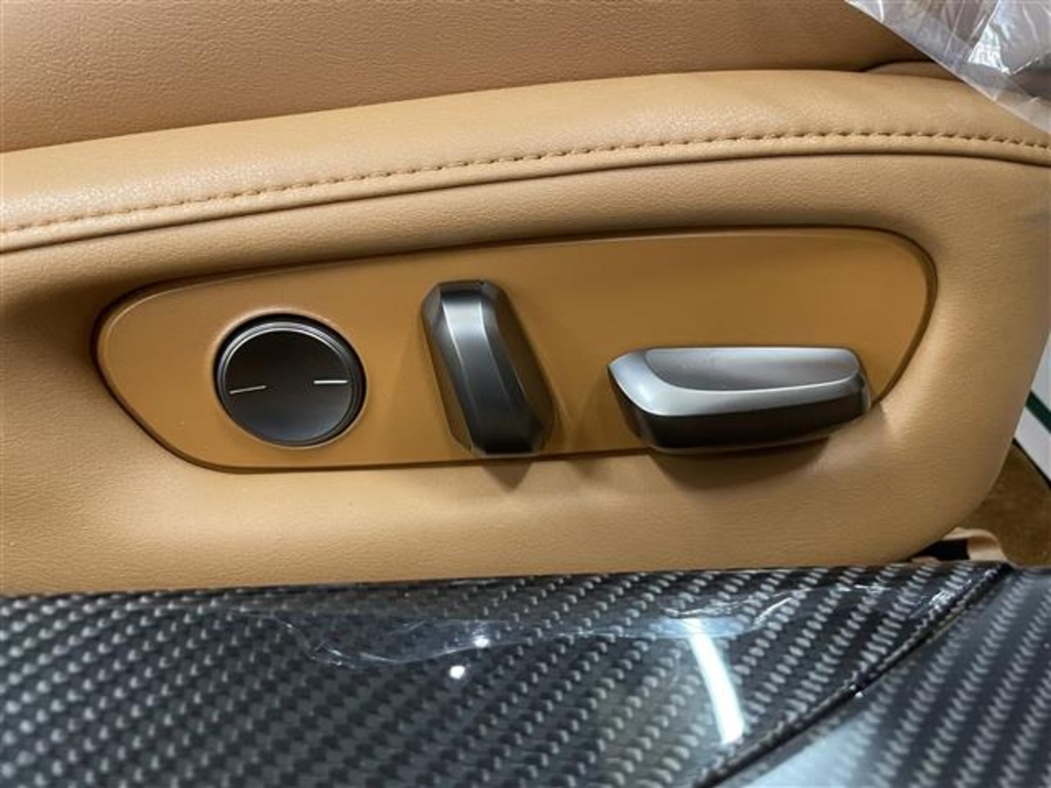 • Brown leather interior with wood trim accents